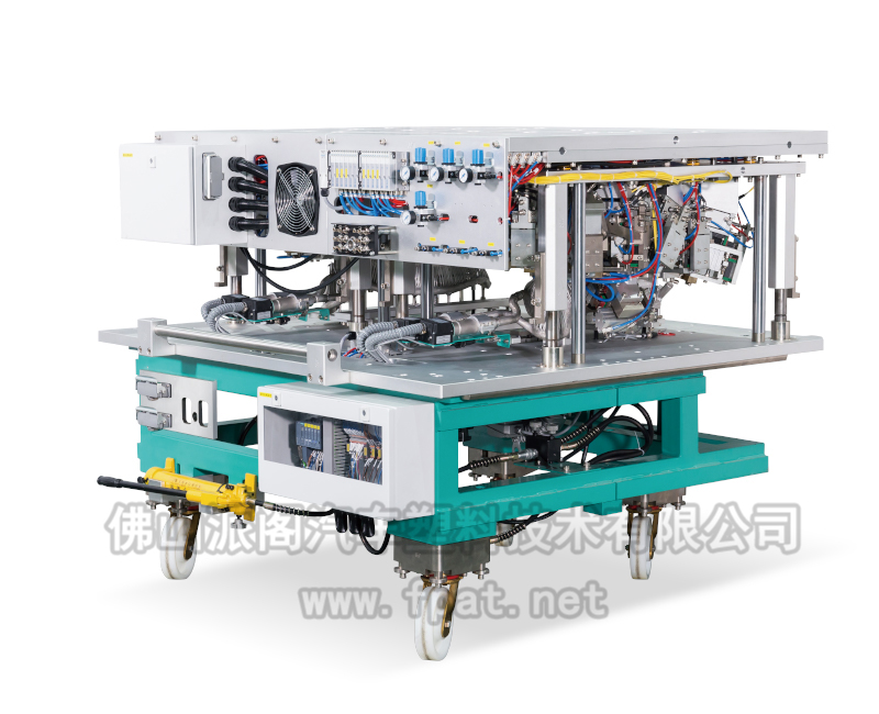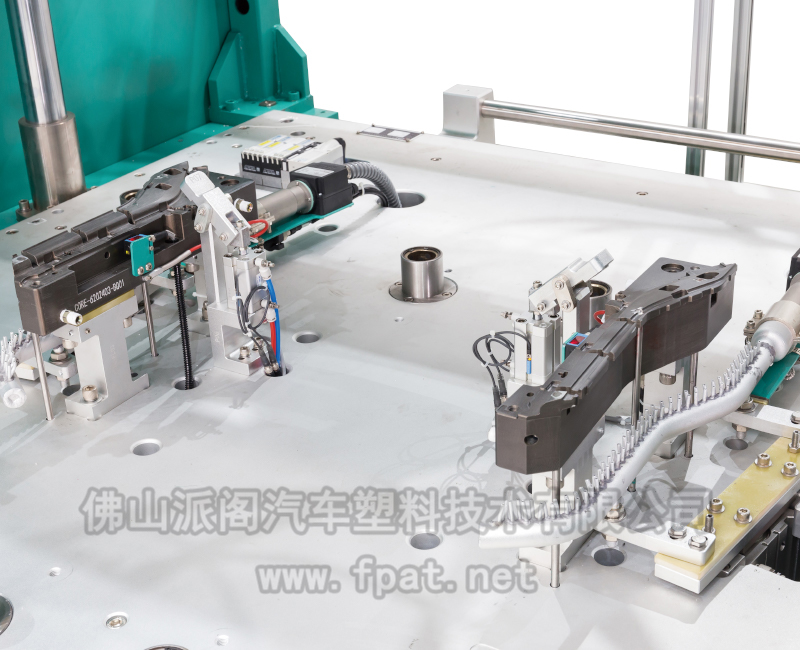 該類設備用于 PVC、真皮等表皮與塑料骨架的粘接復合,并將骨架四周的表皮翻邊包覆過來,多用于汽車內飾件,如門扶手、上框架、插件、手套箱、儀表板飾條等的復合和包邊,并將兩道工序合在一臺設備里完成