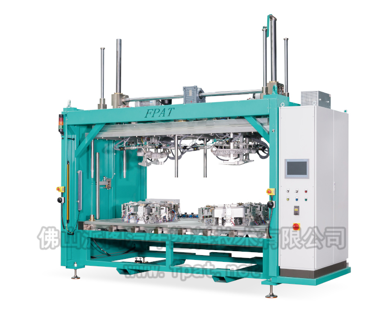 該類設備用于真空復合或壓力復合(粘接)后的零件,并將骨架四周的表皮翻邊包覆過來,多用于汽車內飾件,如門扶手、上框架、主框架、插件、天窗、手套箱、儀表板飾條等
